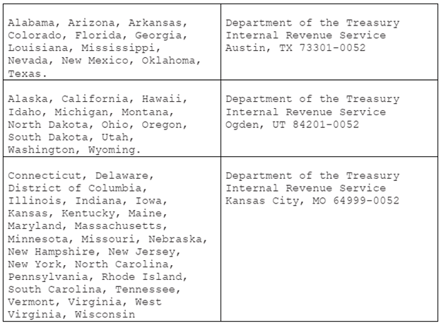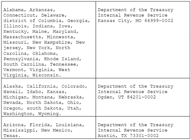 For tax returns expecting a refund, mail return to the address assigned to your state:
