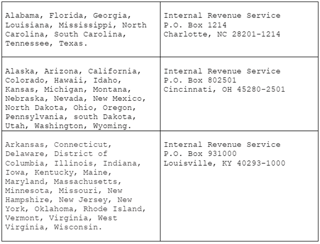 For tax returns enclosing a check or money order, mail to the address assigned to your state: